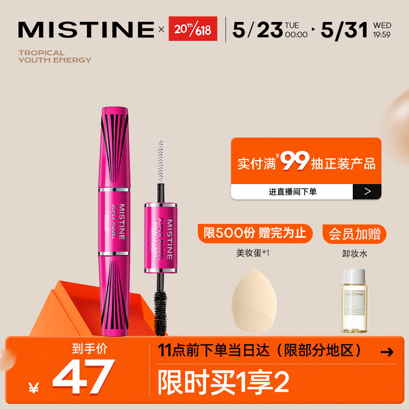 ¥61 Mistine(蜜丝婷)4D双头超模睫毛膏 经典粉 5.5g 立体纤长 防汗不晕染 69