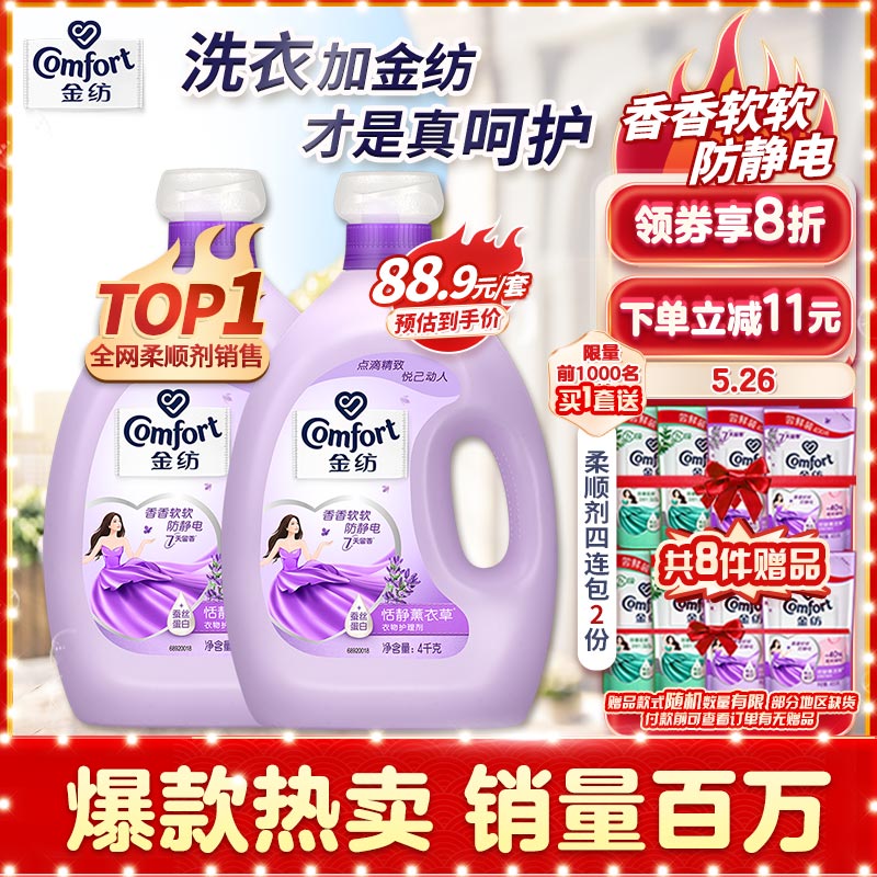 ¥121.1 金纺【半熟恋人】衣物柔顺剂护理剂 香软防静电恬静薰衣草4KG+4KG 124.9