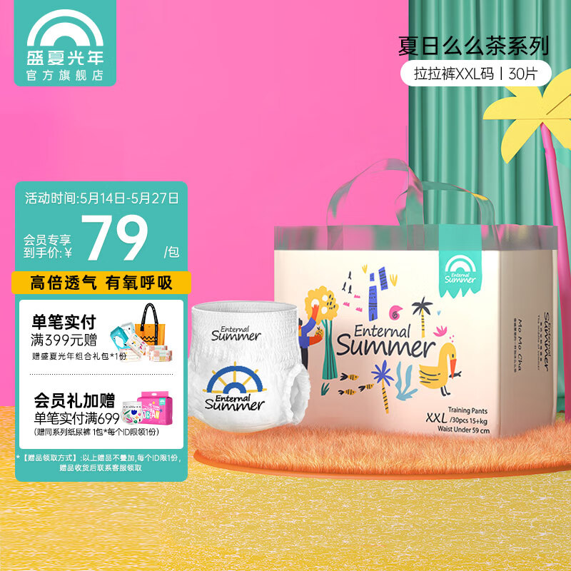 ¥75.9 Enternal Summer盛夏光年夏日么么茶拉拉裤新生儿尿裤 超薄干爽透气尿不湿 拉拉裤XXL码30片(15kg+) 93