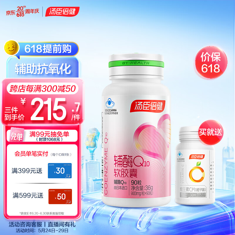 ¥281 汤臣倍健 小爱心辅酶 辅酶Q10软胶囊日本进口 400mg*90粒 辅酶素Q10增强免疫力抗氧化双重保健品 送礼 291
