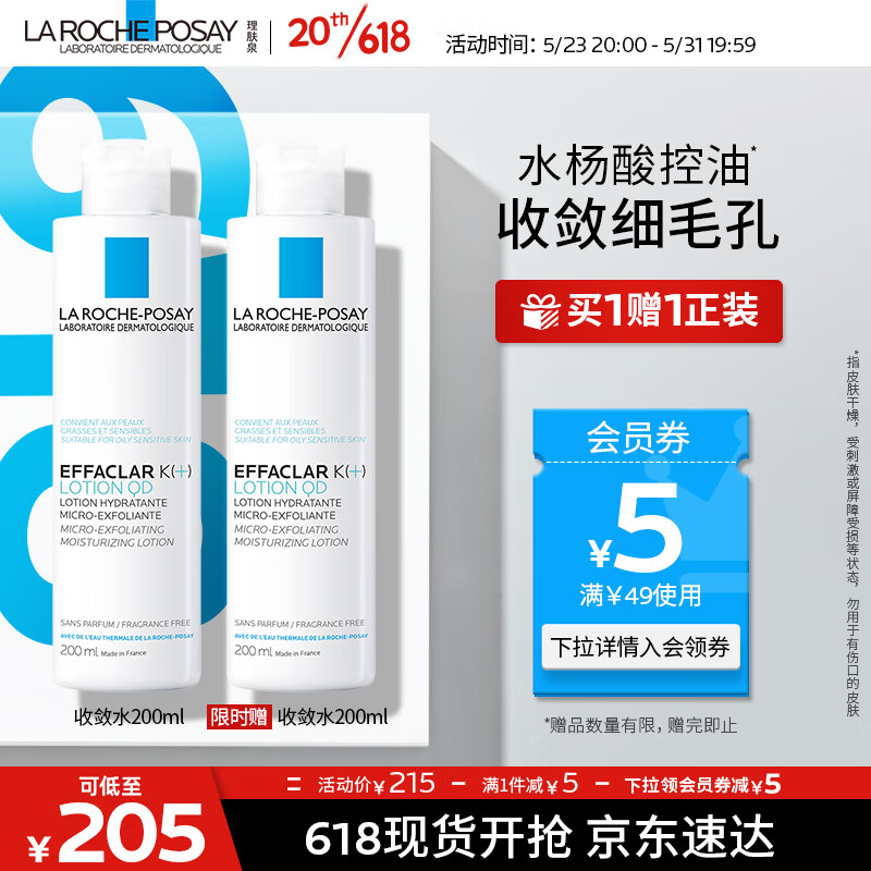 ¥205 理肤泉控油祛痘爽肤水200ml 补水保湿微晶收敛水收缩毛孔水杨酸护肤品 215