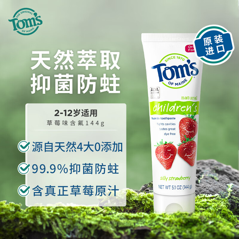 ¥59.9 汤姆小屋Toms天然含氟抑菌防蛀固齿2-12岁儿童宝宝牙膏草莓味原装进口144g 69.9