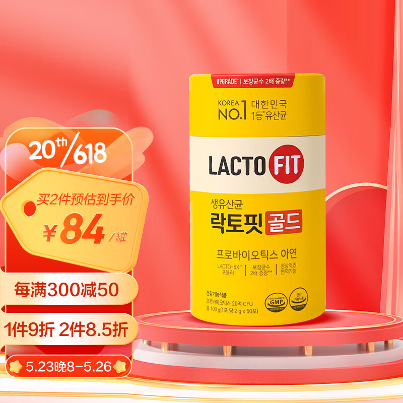 ¥74 钟根堂LACTO-FIT乐多飞活菌益生菌粉肠胃道益生元黄罐乳酸菌2g*50包/罐葡萄味韩国原装进口成人儿童女性全家 99
