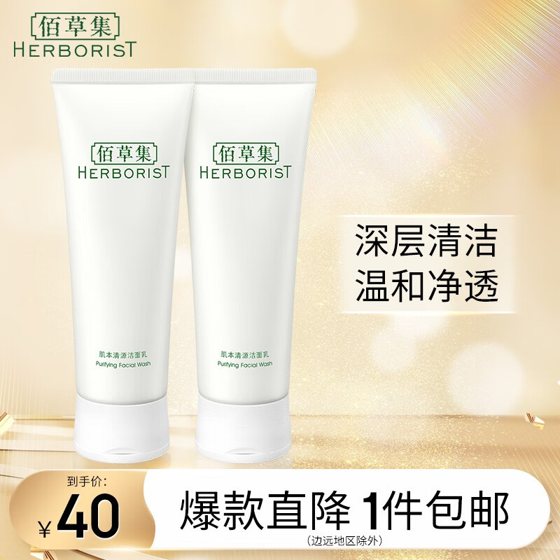 ¥34 佰草集洗面奶 肌本清源洁面乳面部清洁温和洗脸清透补水平衡水油洗面奶 肌本清源洁面乳120ml*2 40