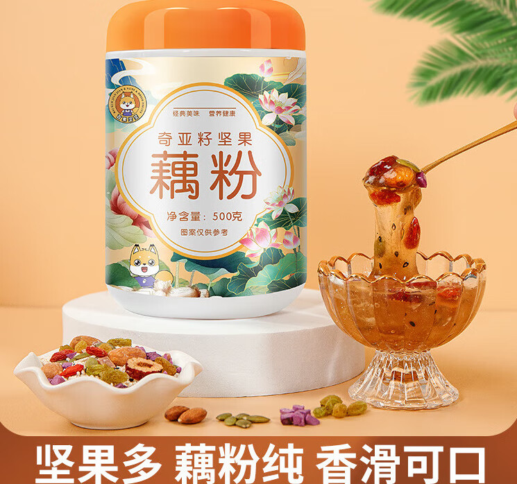 ¥22.8 得人如魚(Derenruyu)藕粉批发奇亚籽坚果藕粉藕粉羹颗粒现货罐装代餐饱腹营养坚果藕粉 圆筒罐坚果藕粉 52.8