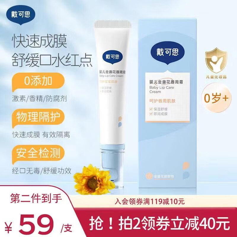 ¥69 戴·可·思(Dexter)婴儿唇周霜宝宝口水唇周疹护理修膏滋润保湿乳液润肤霜疹 唇周霜15g 99