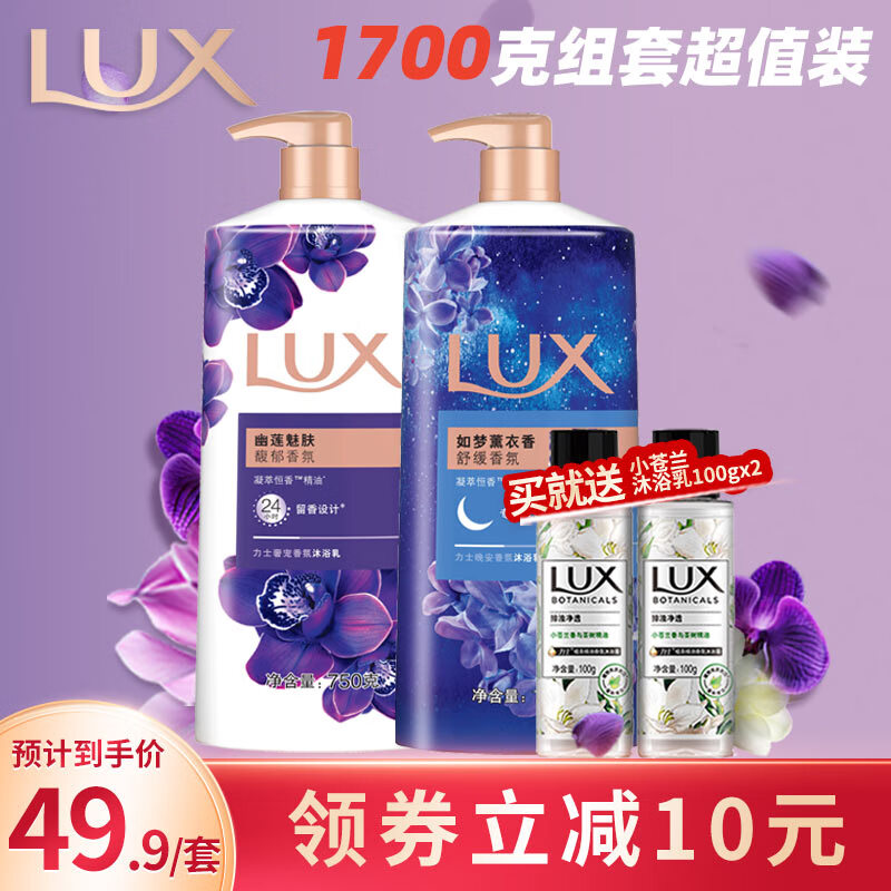 ¥49.9 力士(LUX)精油香氛沐浴露 幽莲750g+如梦750g送小苍兰100gx2持久留香 59.9