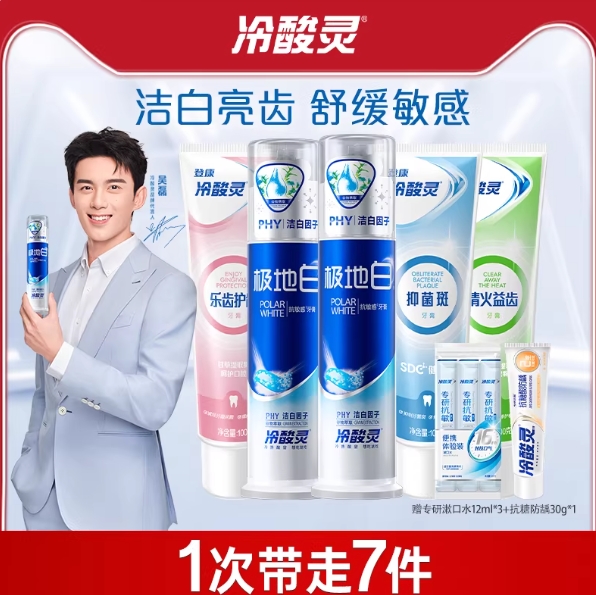 29.3元包邮!冷酸灵.泵式牙膏9件套(咱含:泵式2支+软管3支+贈品)
