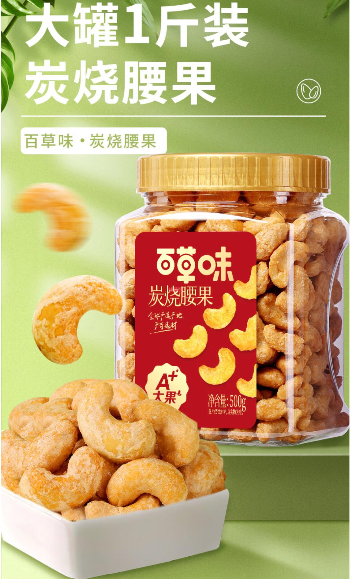 此款百草味 炭烧腰果500g 拍2件,实付63.8包邮;