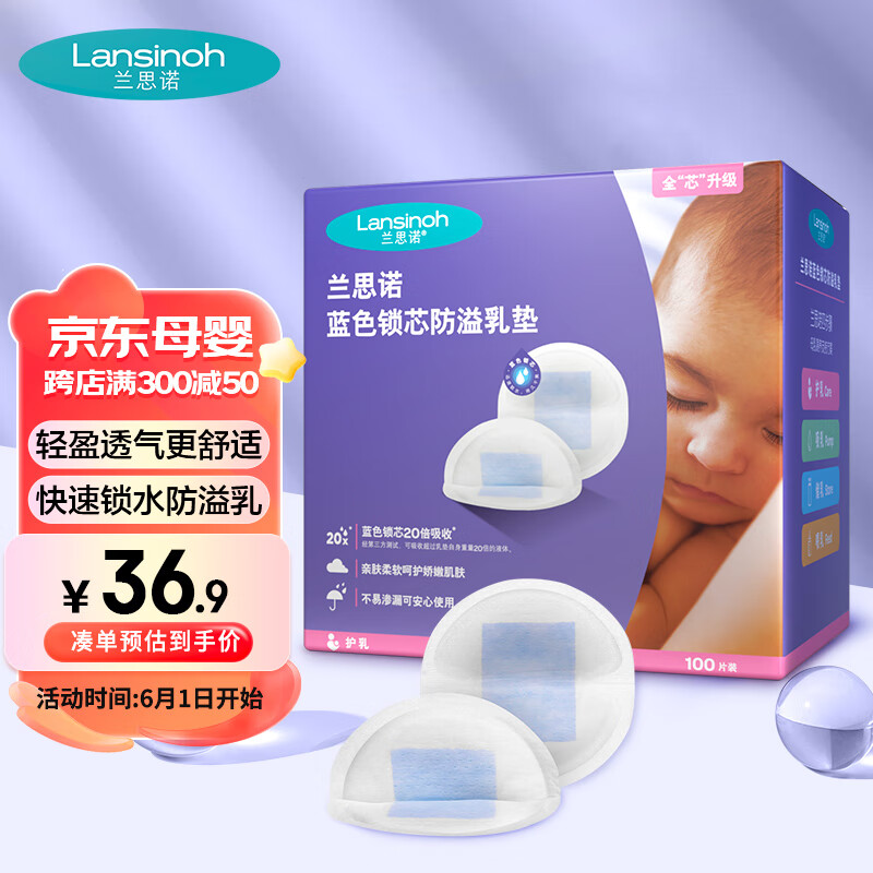 ¥52.55 兰思诺(LANSINOH)防溢乳垫一次性溢乳贴蓝芯升级轻薄防漏隔奶垫 100片 53