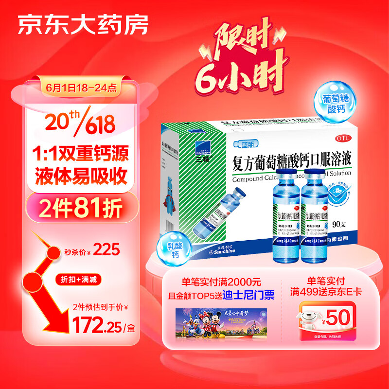 ¥205 三精复方葡萄糖酸钙口服溶液10ml*90支儿童补钙蓝瓶钙铁锌口服液 液体钙 治疗钙缺乏骨质疏松手足抽搐 225