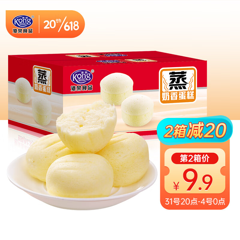¥22.9 港荣 蒸蛋糕早餐食品整箱营养早餐糕点小面包食品饼干蛋糕礼盒 奶香480g 29.9