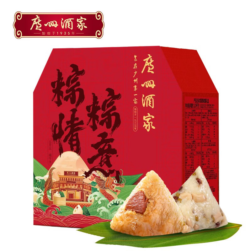 ¥52 广州酒家中华老字号端午节粽子礼盒咸蛋黄肉粽棕子嘉兴蜜枣豆沙甜礼物团购 粽情粽意礼盒1000g(6咸4甜) 68