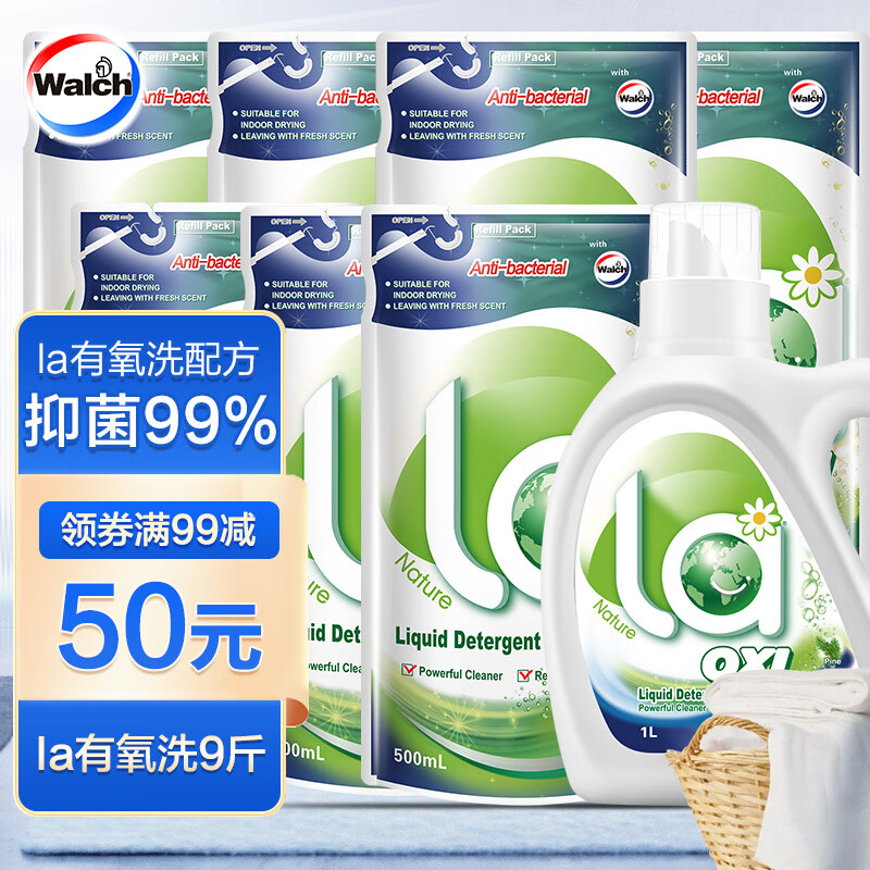 ¥49.9 威露士la有氧洗衣液除菌除螨组合装 9斤(松木1L+柠檬500ml*7) 109.9