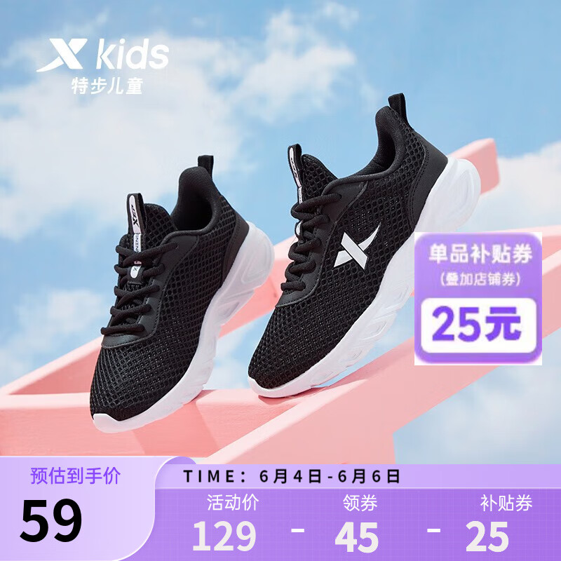 ¥84 特步童鞋儿童运动鞋男童女童透气中大童童鞋软底网面透气儿童跑鞋 黑白 36码-系带 129