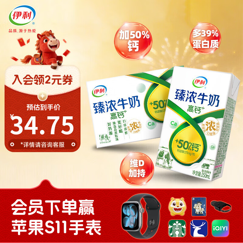 伊利臻浓高钙牛奶 250ml*16 盒仅需 34.75 元