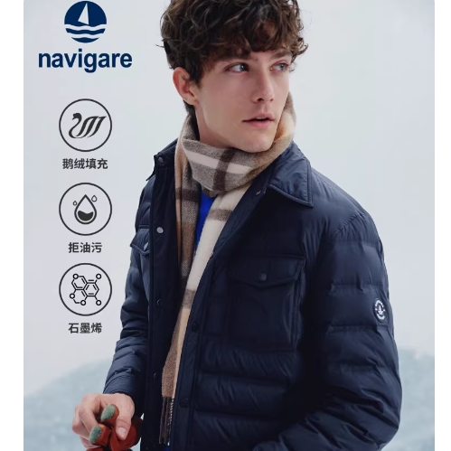 305元!意大利小帆船 2025秋冬季新款 男士三防轻便衬衫式鹅绒羽绒服 三色