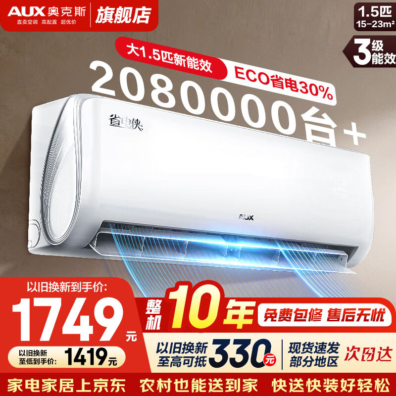 奥克斯1.5匹变频空调到手价1403元