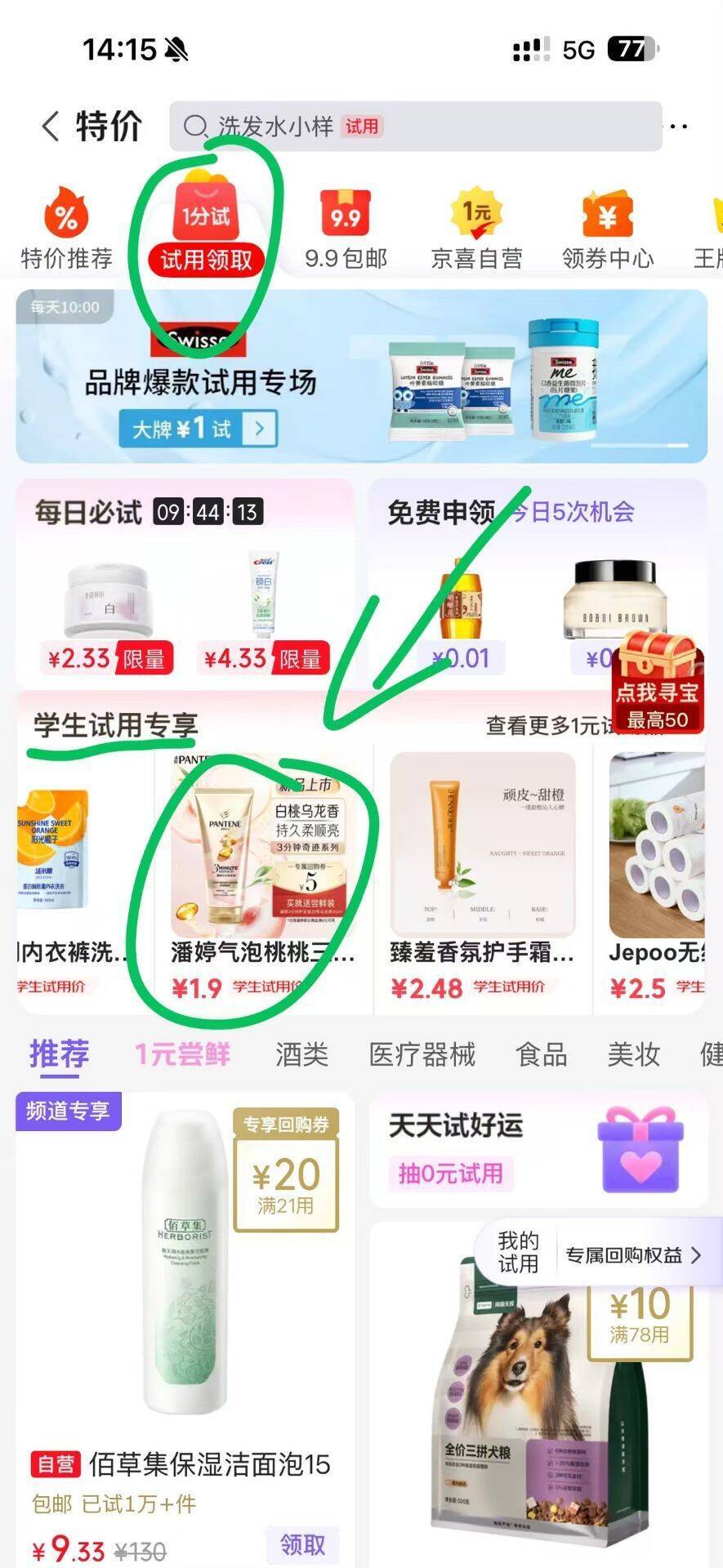 京东学生专享:1.9元抢潘婷发膜试用