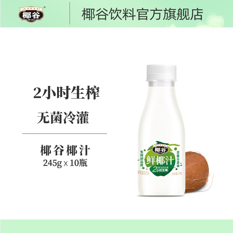 ¥29.9 椰谷鲜椰汁椰奶正宗椰子果肉含乳饮料牛乳饮品椰奶椰汁水 2小时椰汁245g*10瓶(随机包装) 69.9