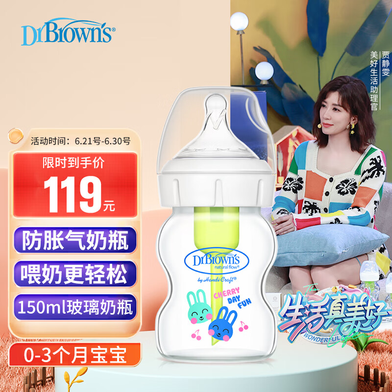 ¥141 布朗博士奶瓶 新生儿奶瓶 婴儿防胀气奶瓶 玻璃奶瓶150ml(0-3月龄)音乐兔 149