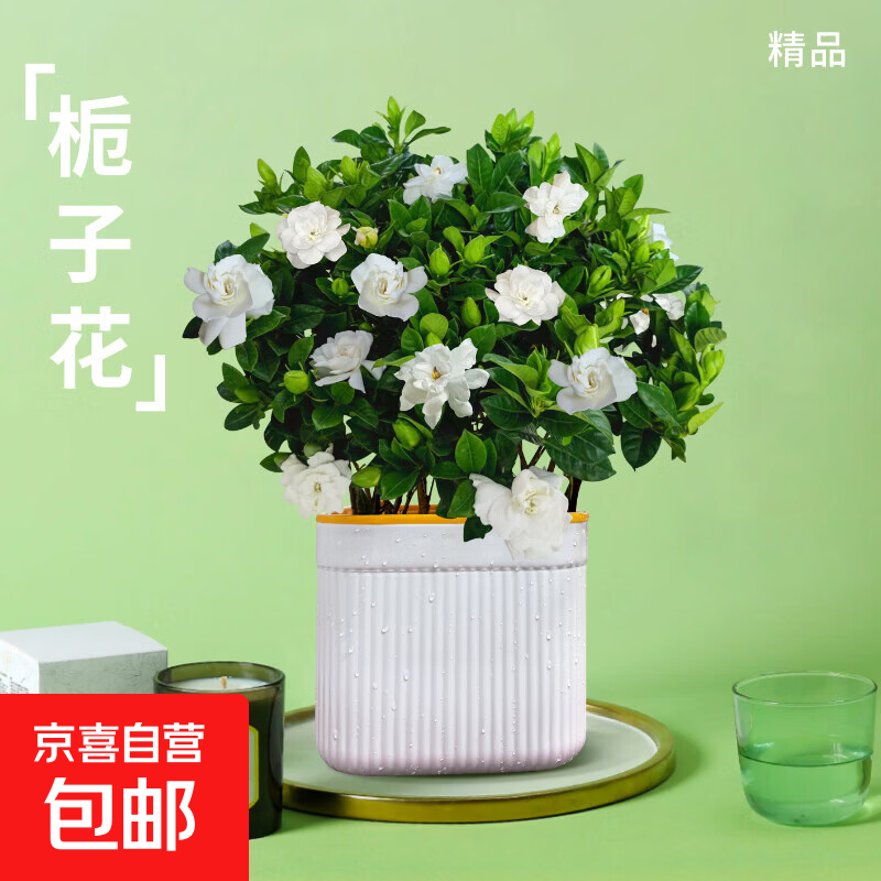 19.9元栀子花盆栽大盆+竖纹吸水盆,带花苞发货