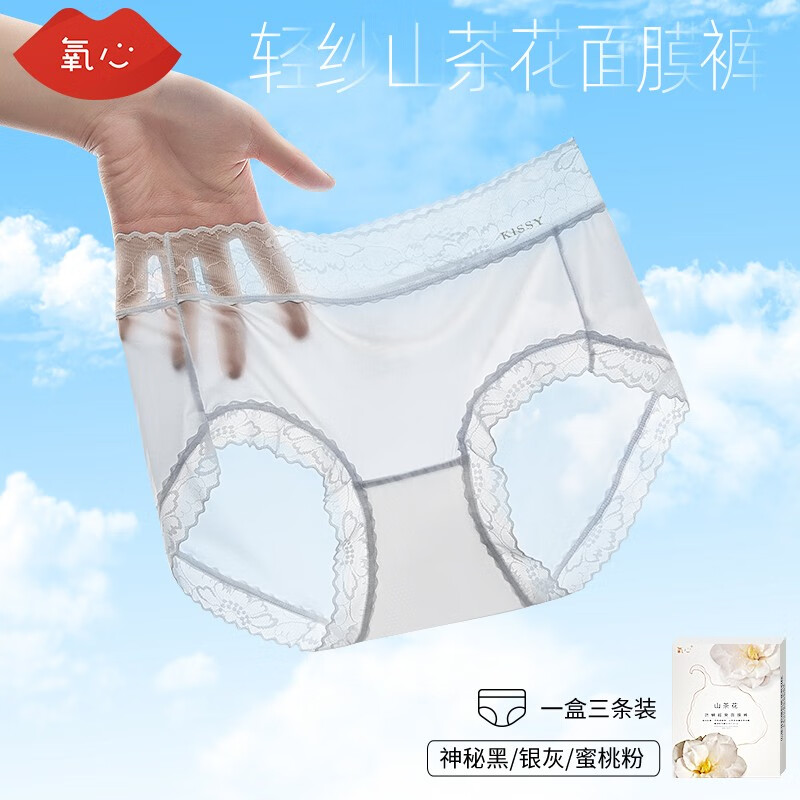 ¥39.9 氧心(YANGXIN)3条装蕾丝边无痕蚕丝女士内裤夏季面膜抑菌裆超薄性感少女生内裤 香槟色+晴天蓝+豆绿 XL(125-140斤) 59.9