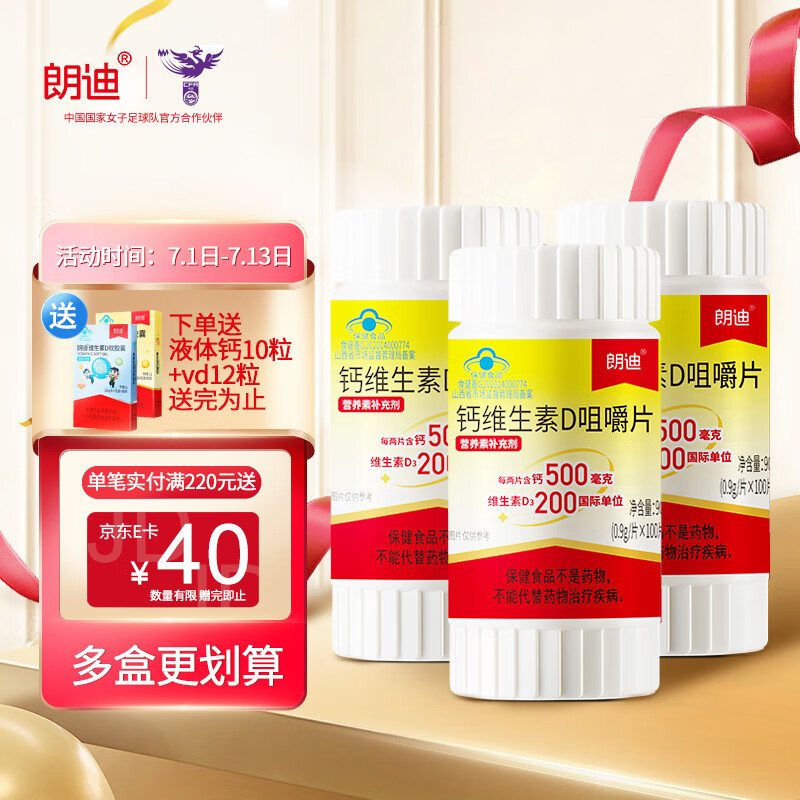¥111 朗迪 碳酸钙D3片 100片*3盒 儿童妊娠和哺乳期妇女更年期妇女老年人的钙补充剂 并帮助防治骨质疏松症 123