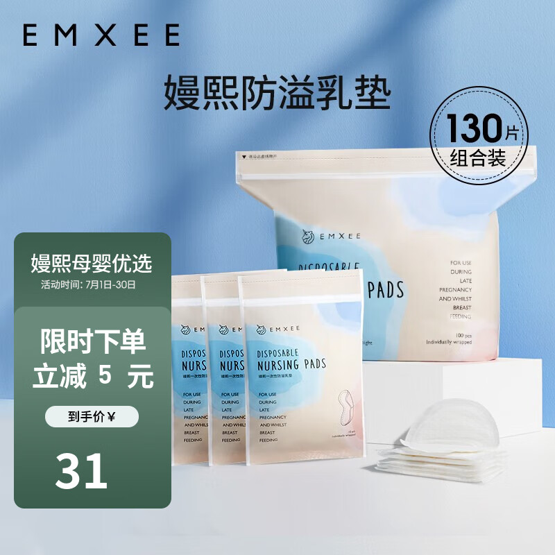 ¥29.9 嫚熙防溢乳垫孕妇产后一次性防溢乳垫超薄瞬吸无感舒适体验透气 130片装 35.9