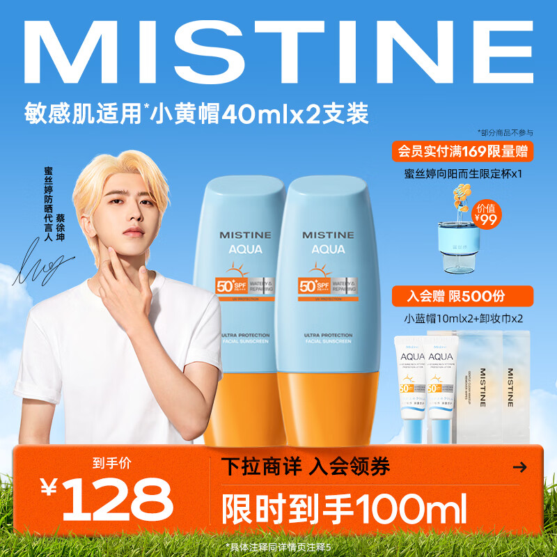 ¥119 Mistine(蜜丝婷)新版小黄帽面部水润防晒霜40ml*2组合装 敏感肌适用 148