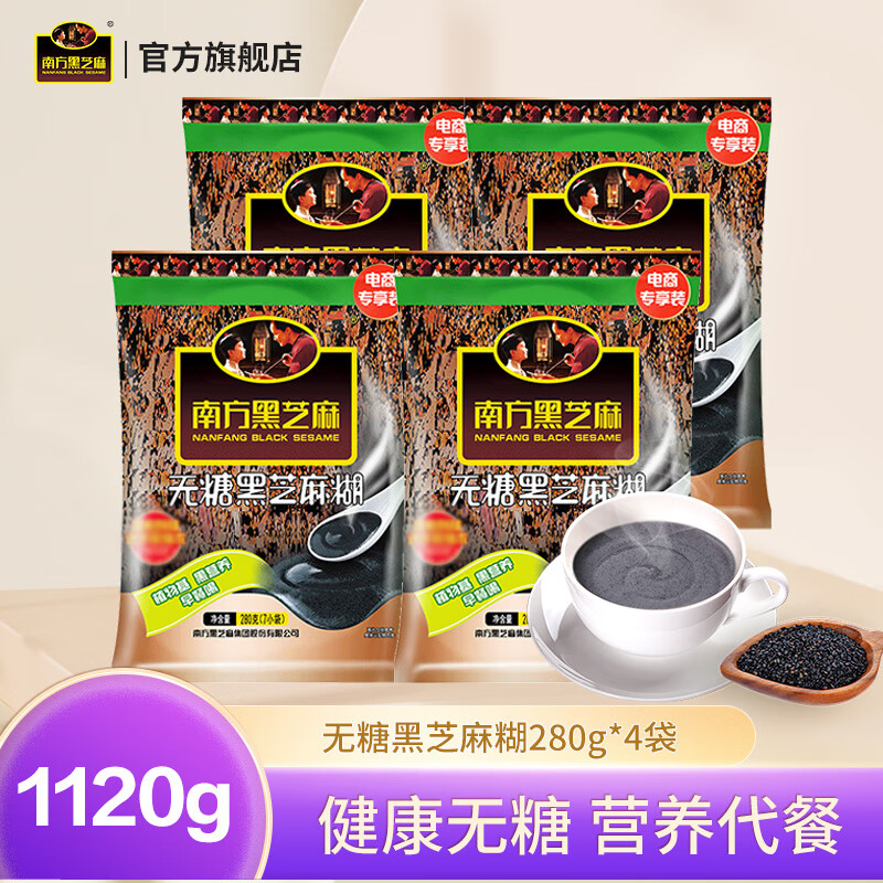 ¥39.9 南方黑芝麻(NANFANG BLACK SESAME) 经典黑芝麻糊4袋组合装营养早餐冲饮即食 无糖280g*4袋 59.9