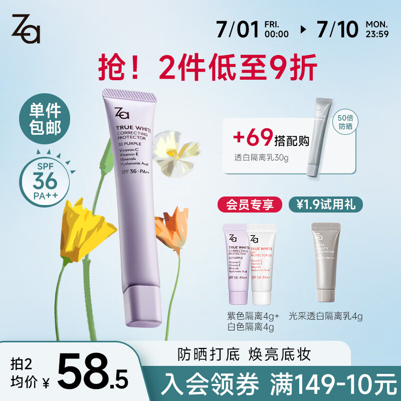 ¥60 姬芮(ZA) 紫色焕真润色隔离霜防晒遮瑕霜妆前乳三合一35g SPF36 65