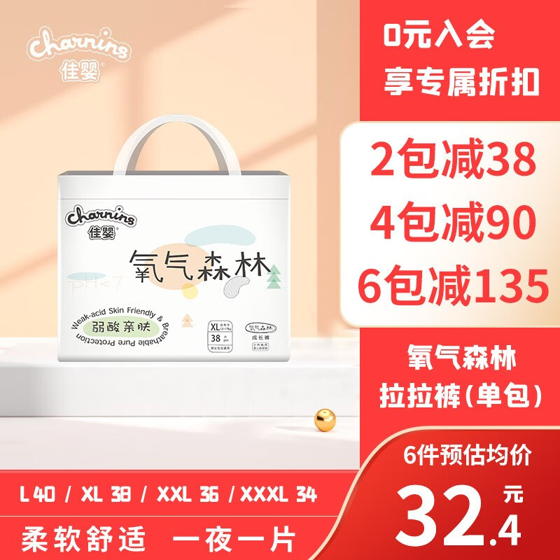 ¥29.9 佳婴 氧气森林拉拉裤超薄婴儿尿不湿男女宝宝透气弱酸亲肤成长裤 XXL码36片11-15KG 54.9
