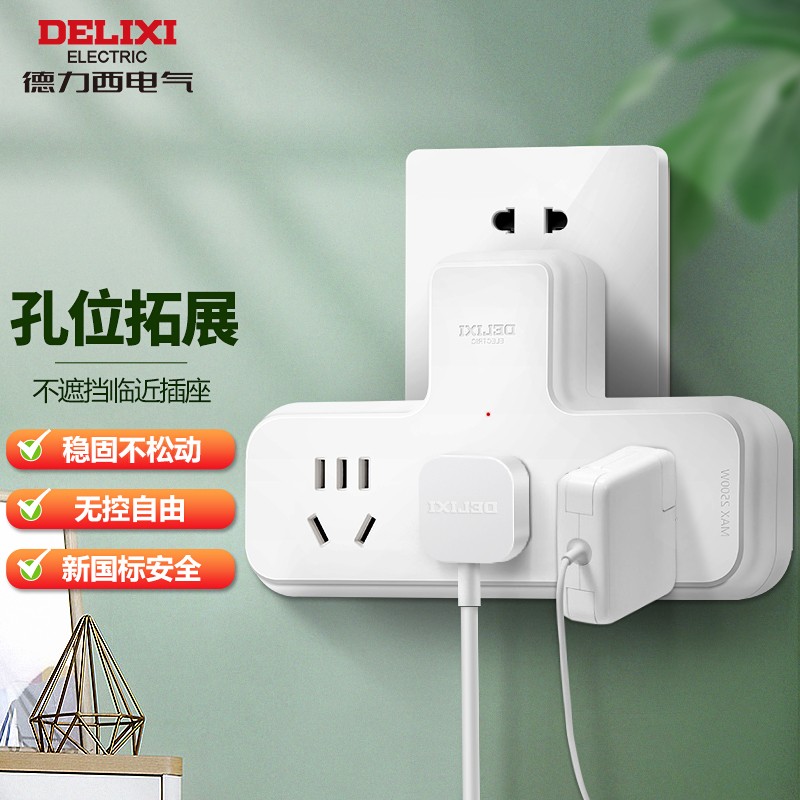 ¥14.9 德力西(DELIXI) 品字形一转三转换插座/无线转换插头/电源转换器适用厨房卧室三位分控插座 品字形【无控一转三】 21.9