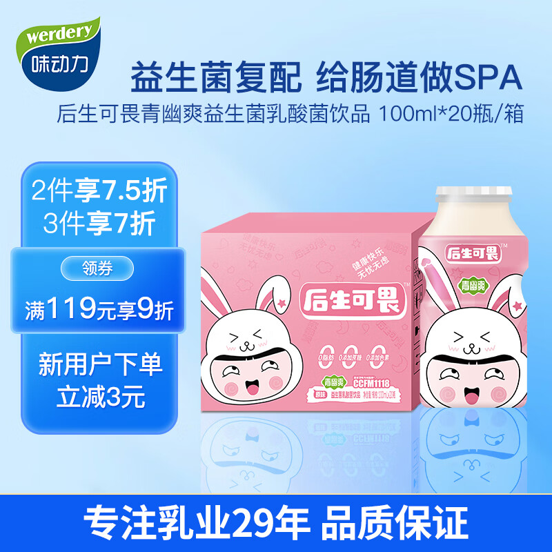 ¥37.9 味动力(werdery) 后生可畏青幽爽益生菌乳酸菌饮品100ml*20 (原味)节日礼盒装 57.9