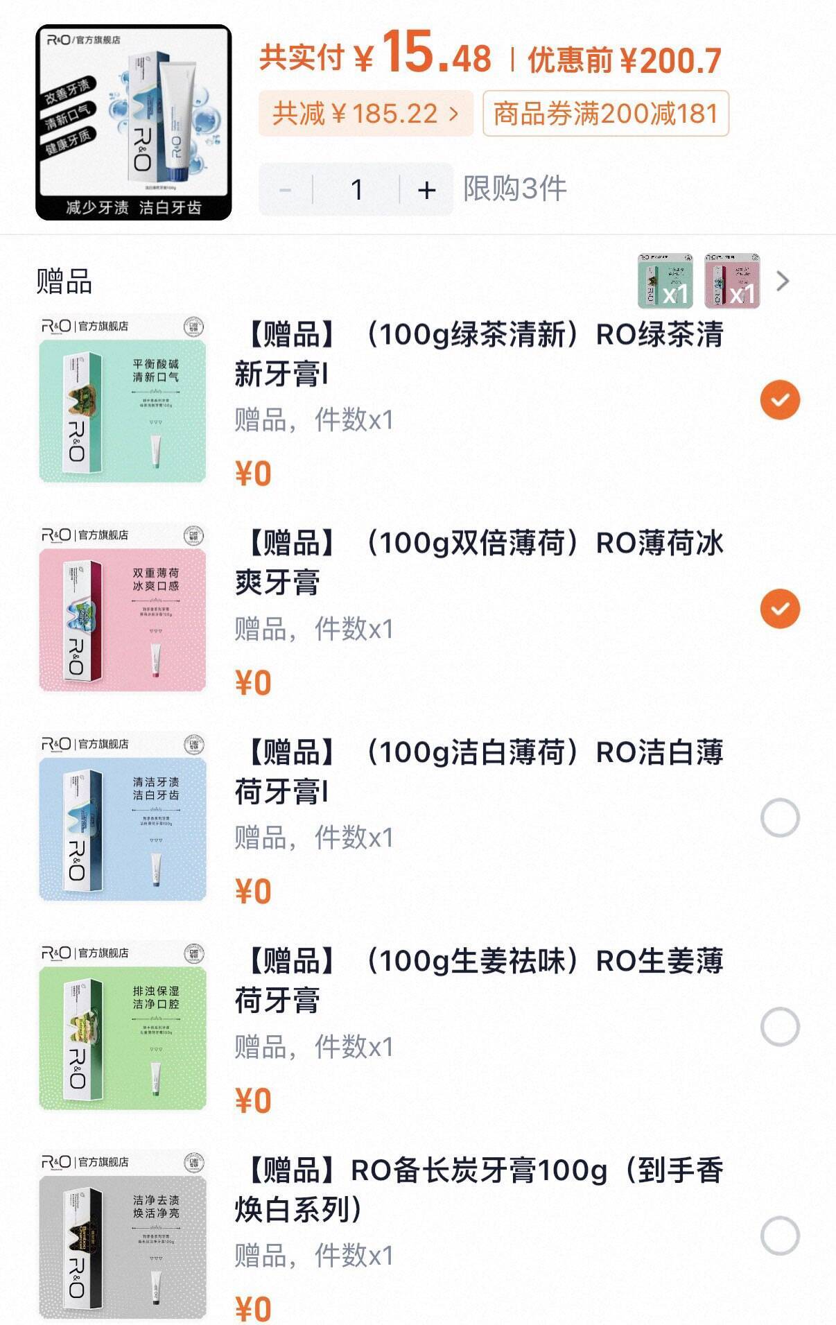 RO 焕白亮齿牙膏拍 1 赠 2,到手 3 支仅 19 元!