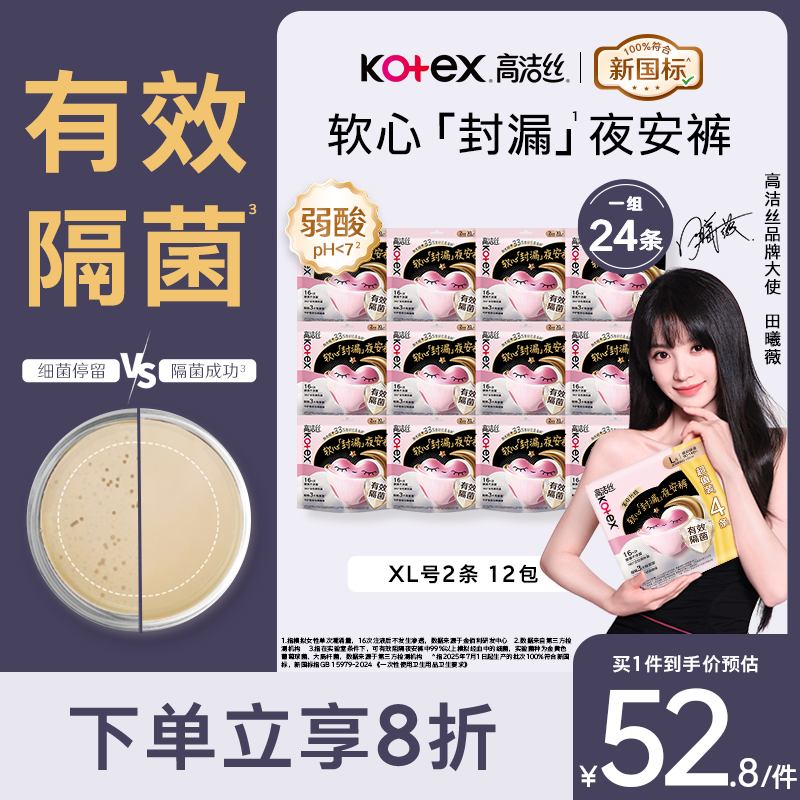 自营高洁丝软心夜安裤XL号24条,最终到手价50.16元