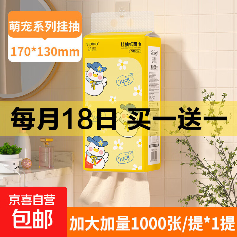 京喜买一赠一:丝飘抽纸1000张*2提仅需4.99元