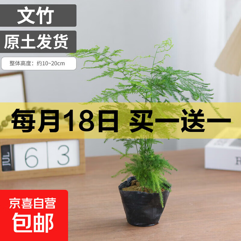 京喜绿植买一赠一:文竹2盆仅5.99元、金钻2盆+吸水盆9.98元