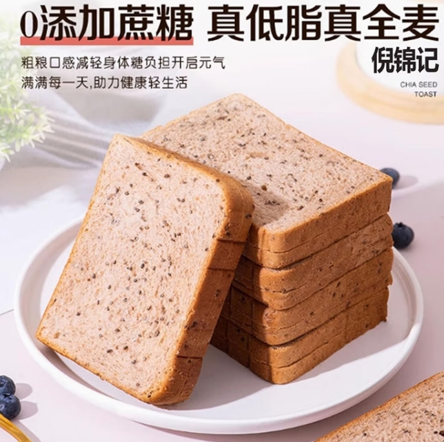 12.9元!自然道 0糖 奇亚籽全麦黑麦面包25g*20包共40片