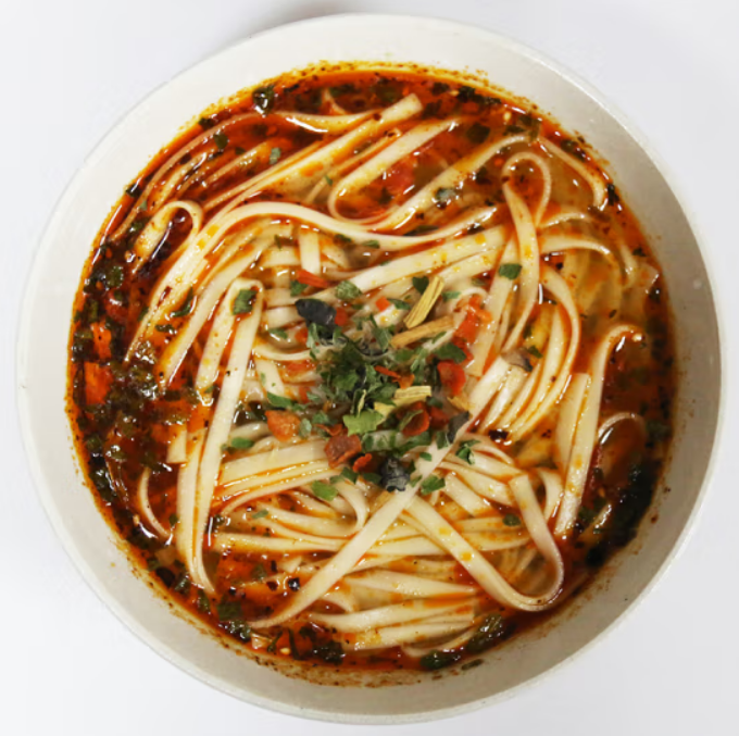 这款面条搭配了丰富多样的配料,包括炸酱肉末、豆瓣酱、蒜末、香菜等,每一种配料都能为面条增添独特的风味。炸酱肉末鲜香美味,豆瓣酱辣味十足,蒜末和香菜给整个菜品增添了清新的口感。这些配料的融合,让秦圣臊子面更加丰富多样,每一口都能带来不一样的惊喜!