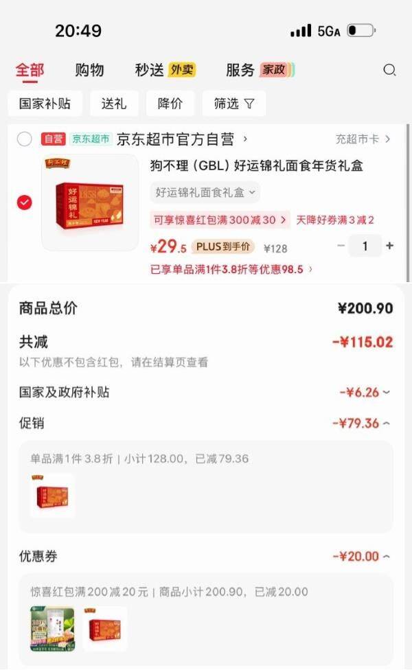 狗不理好运锦礼面食礼盒凑单后仅需29.5元