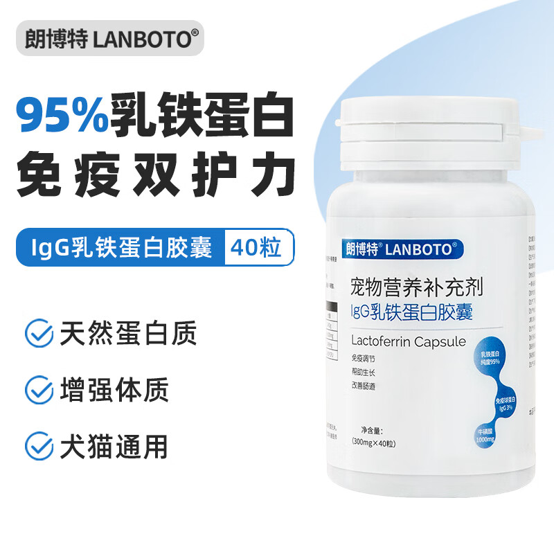 ¥76 朗博特(LANBOTO)IgG乳铁蛋白猫咪幼猫狗提高免疫力 40粒 135