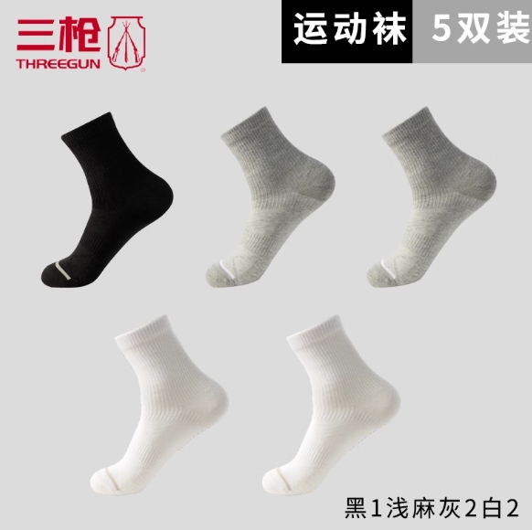 10.9元包邮!三枪官旗男女针织中筒袜5双