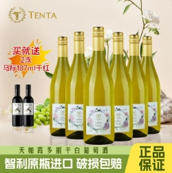 198元包邮!天帕霞多丽干白葡萄酒13度750ml 6支装+送马标187ml干荭*2 果香浓郁