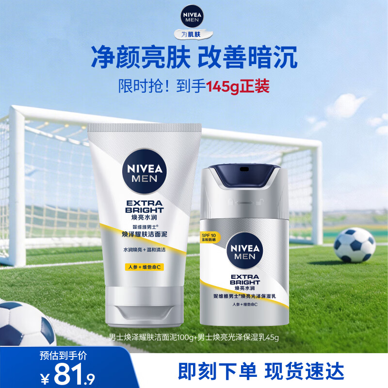 自营妮维雅个护合集:男士焕泽保湿套装低至60.9元,小蓝管双支仅需90元