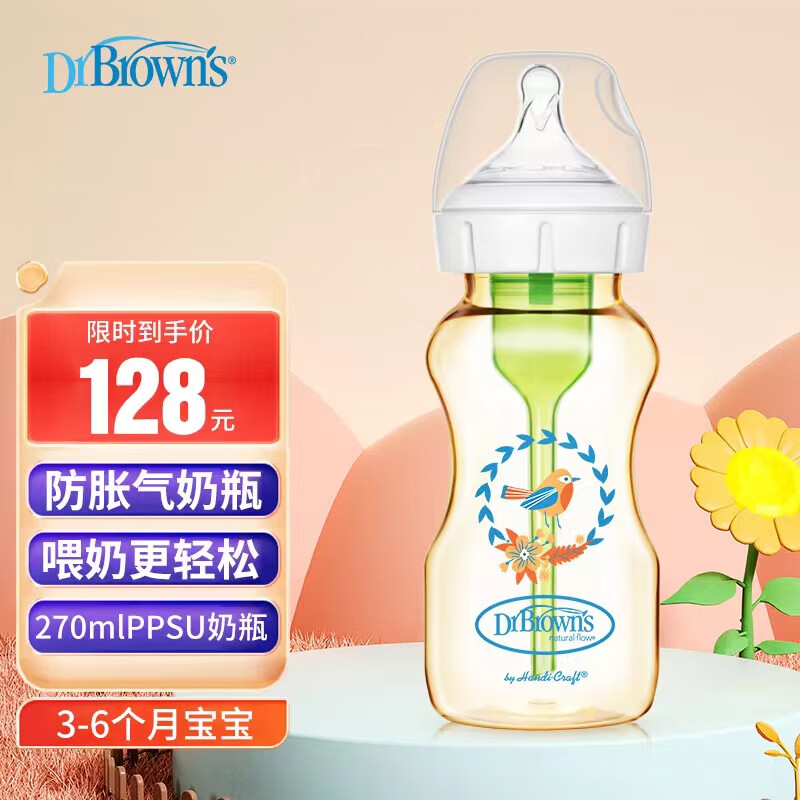 ¥151 布朗博士奶瓶 婴儿奶瓶防胀气奶瓶PPSU奶瓶(3-6月龄)270ml防摔奶瓶 喜鹊 159
