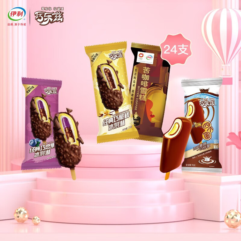 ¥64.9 伊利巧乐兹冰淇淋经典系列巧克力脆皮苦咖啡雪糕 组合装24支 109.9