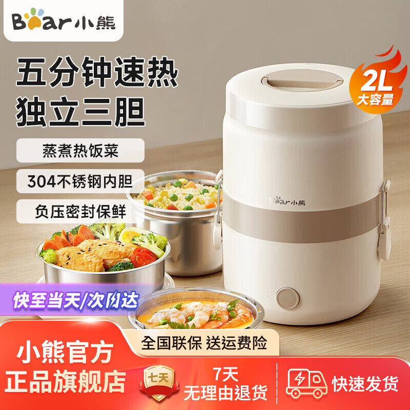 小熊便携式电热饭盒2L双层 首购叠Plus到手83.3元