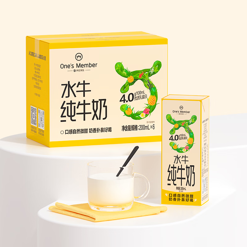 1号会员店4.0g蛋白水牛纯牛奶200ml*6盒,概率得券后到手仅9.9元